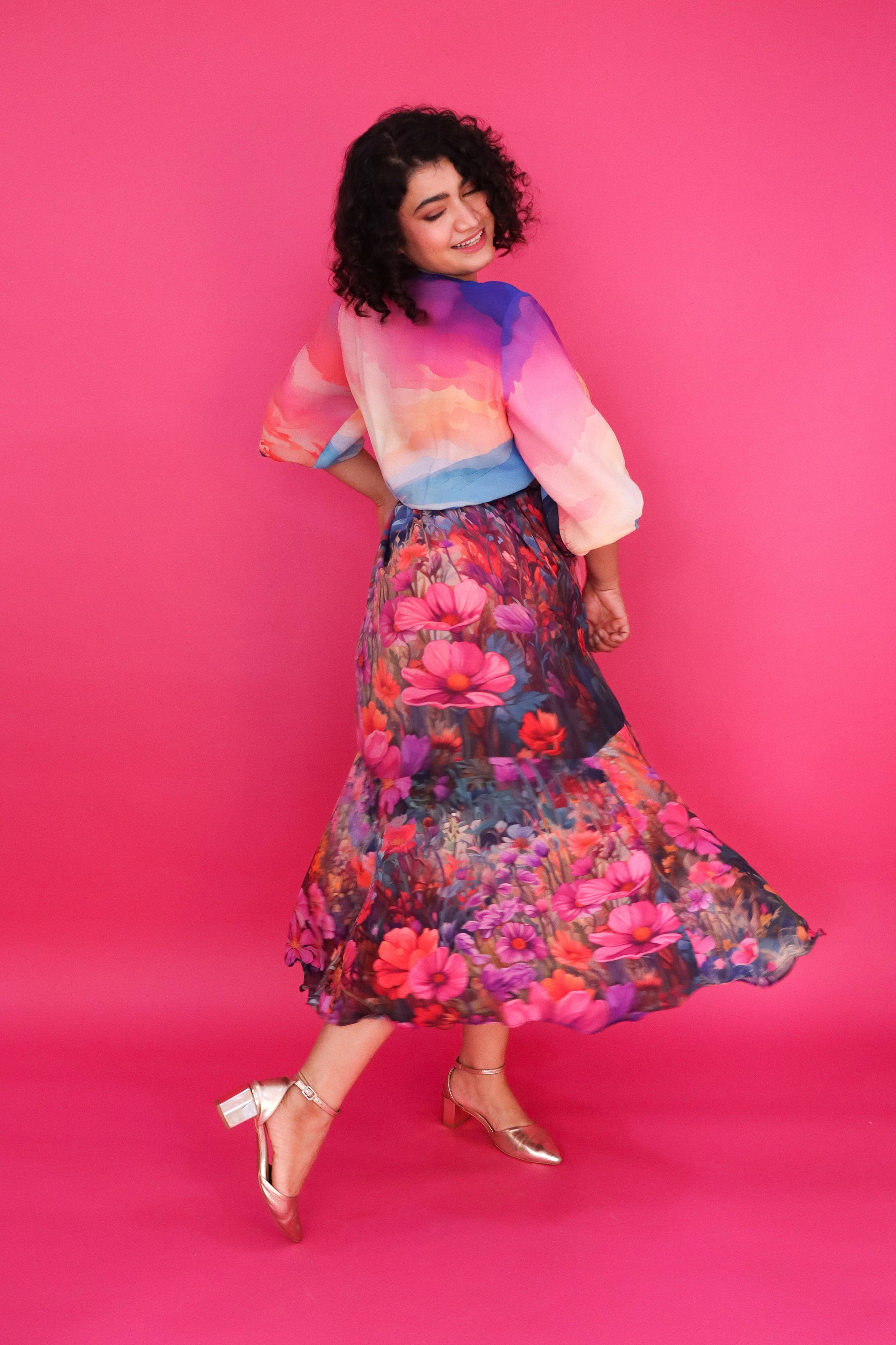 Eye catching print inspired by sunrise in the Valley of Flowers.