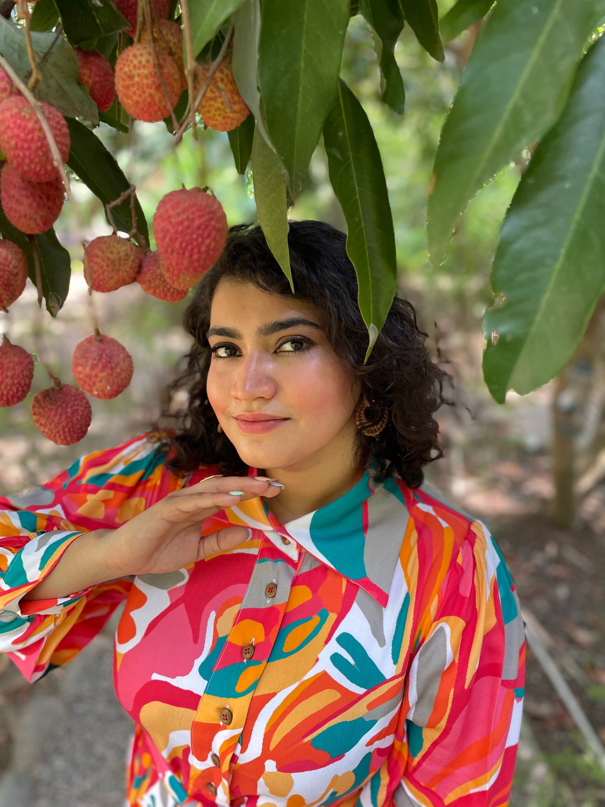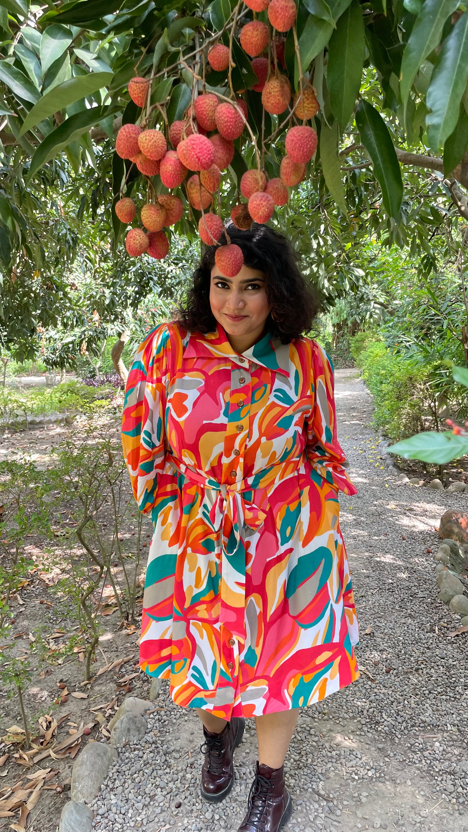 his comfortable shirt dress comes with a belt, has pockets and features a flattering petal-like silhouette, designed to drape effortlessly on curves and. The colorful print, inspired by blooming flowers under the summer sun, brings a joyful and uplifting vibe to your wardrobe. With its lightweight fabric and flowy design, the Petal Dress is perfect for both casual outings and special occasions.