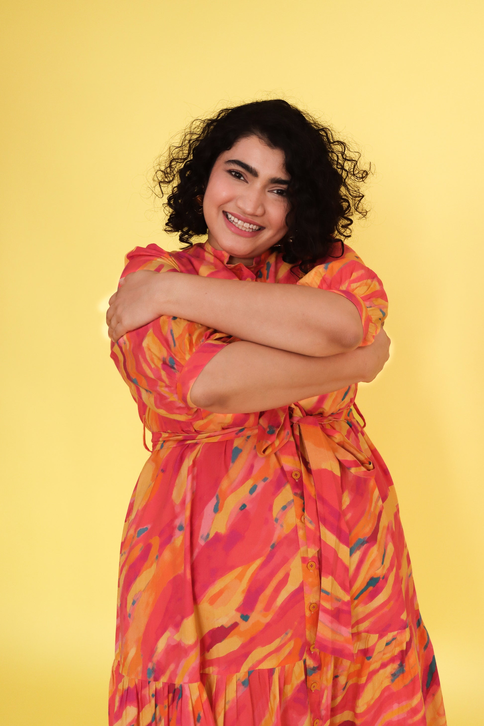 Unleash your playful side with the Sunset Glow Dress. Designed to make you feel confident and bold, this dress is a perfect mix of fun and fabulous. Luxurious Oxford Cotton fabric and tiered silhouette offer comfort, while the eye-catching print ensures you'll stand out wherever you go. Whether you're headed for a day out or a special occasion, this dress will have you smiling in joy!